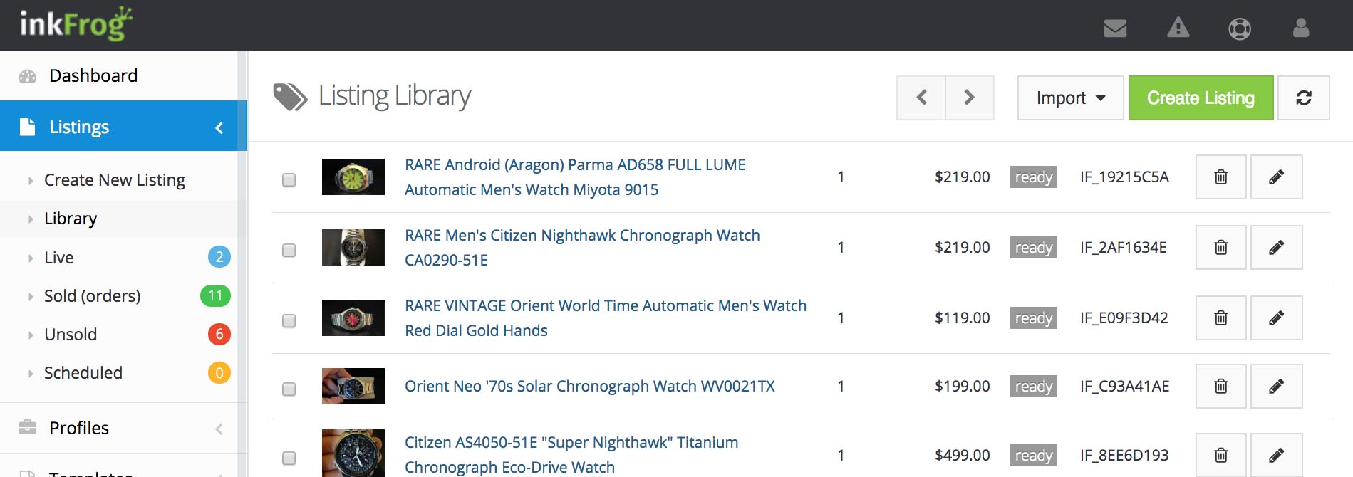 inkFrog profiles enable you to list so quickly and easily that you'll never want to create listings one at a time again. If you haven't already done so, now is the time to put profiles to use. Here's how.