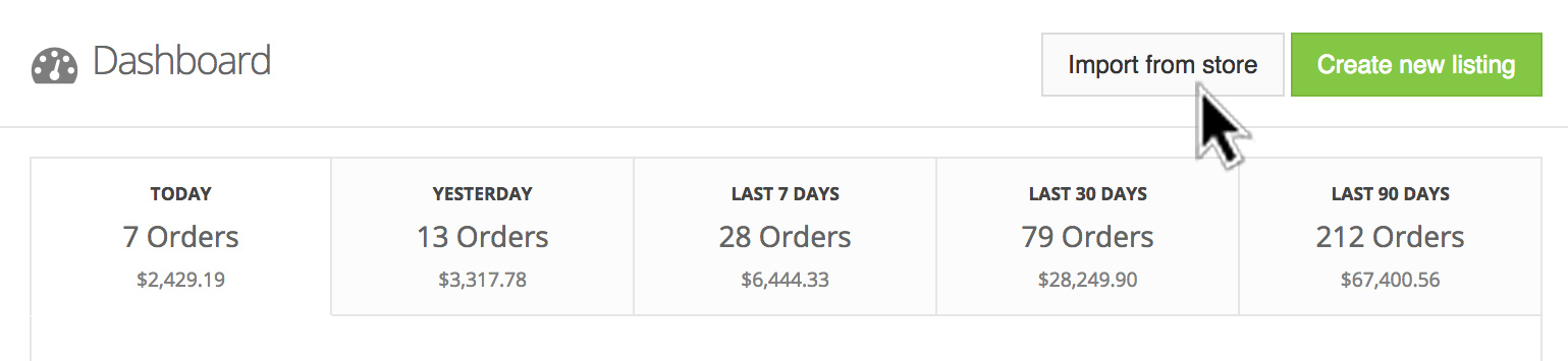 Click "Store Connector" to visit your stores area, then "Import from store" to import listings.