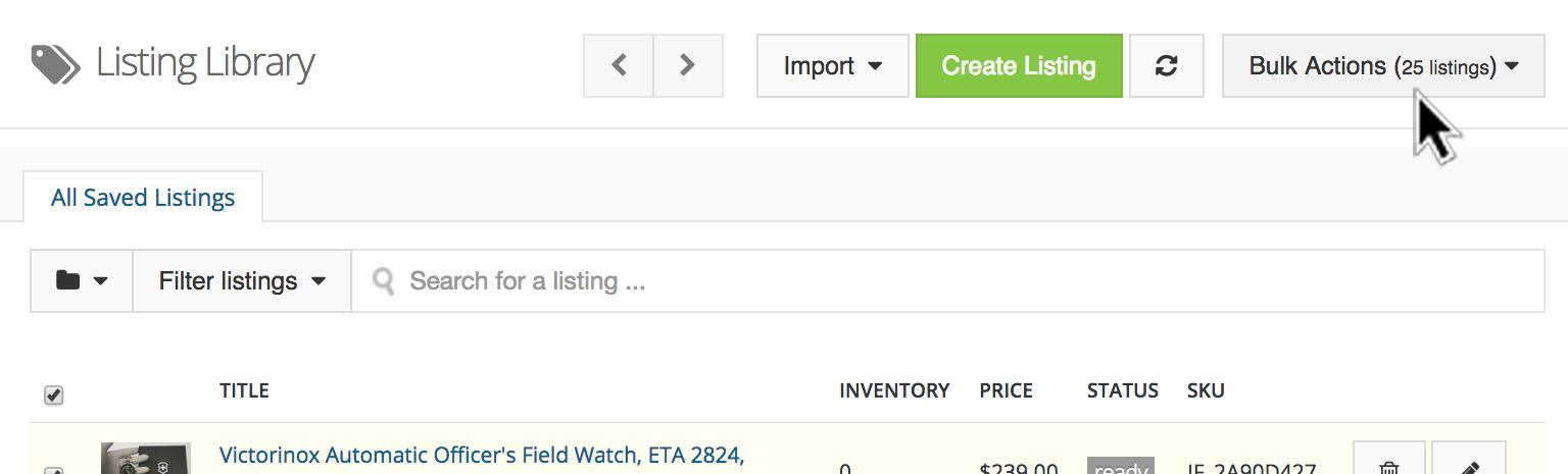 Select "Bulk Actions" → "List to eBay" to post the listings your selected up for sale on eBay.