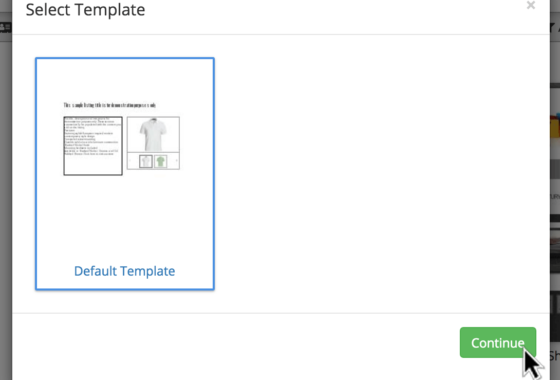 You'll be shown a dialog asking for which template to use as the basis for your new template. Select "Default Template," which is completely blank but for a title, description, and listing images on a white background.